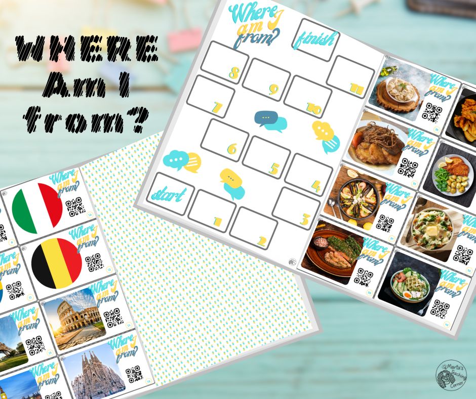 - 64 karty „Where am I from?” (flagi, miejsca, jedzenie, kultura)