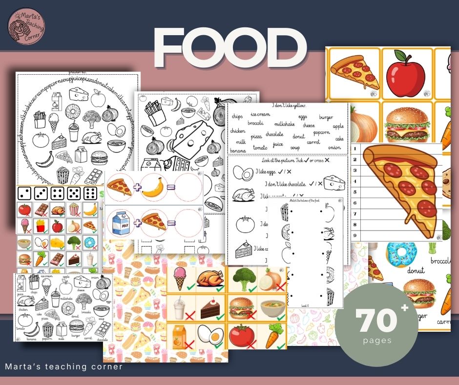 To kompletny zestaw do pracy z tematem FOOD – od pierwszego wprowadzenia słownictwa po komunikacyjne gry w grupach.
